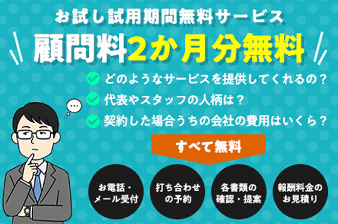 この2ヶ月間でサービスの比較をしていただき、契約を変更する際にも報酬がニ重払いとならないようにできます。
