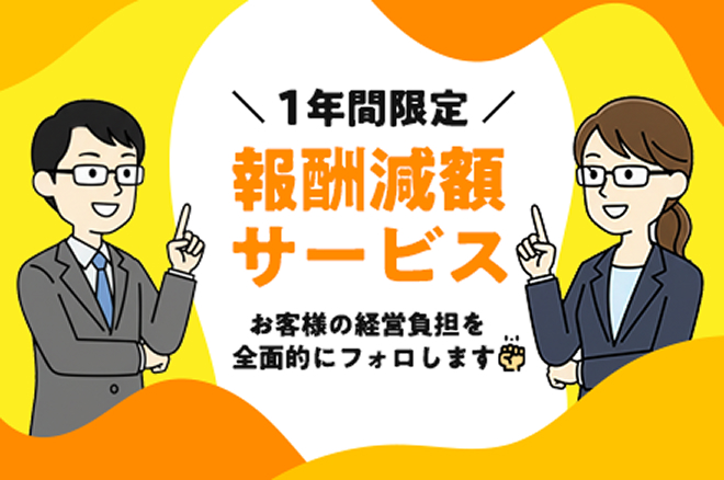 1年間に限り月額報酬または決算料金を減額するサービスです。